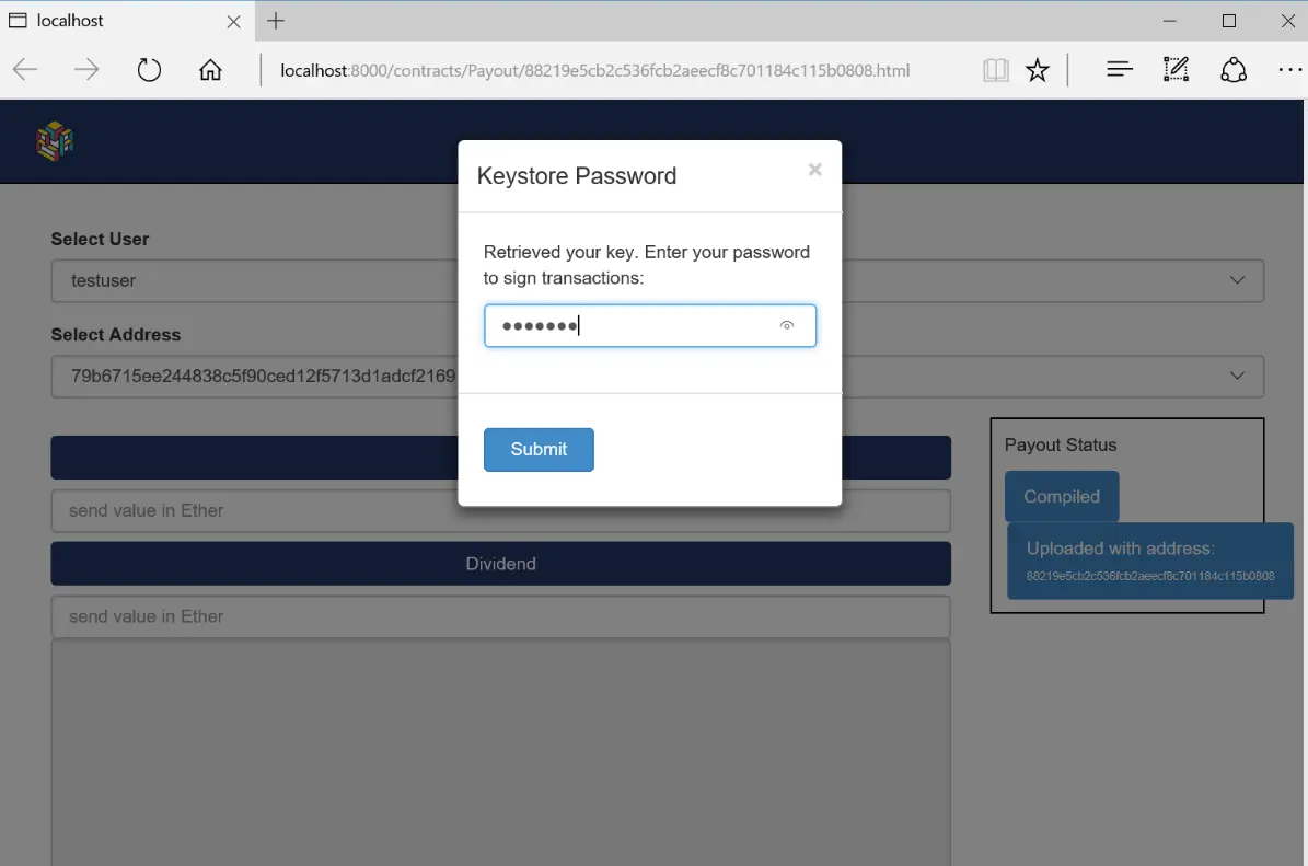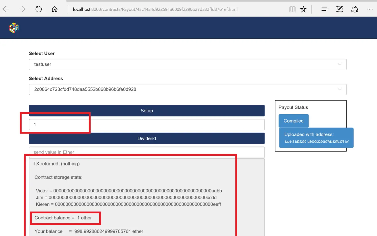 部署后,将为生成一个测试页面,允许你测试智能合约: