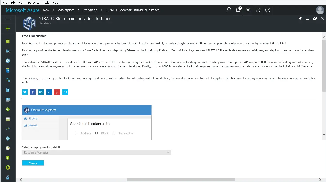我必须说,关于这方面的文章很少,而且大多数都已经过时了,所以这激励我做自己的研究。我发现BlockApps公司提供了Microsoft技术堆栈和以太坊区块链技术之间的联络。截至今天,你可以在Microsoft Azure中尝试Visual Studio集成区块链单个实例。