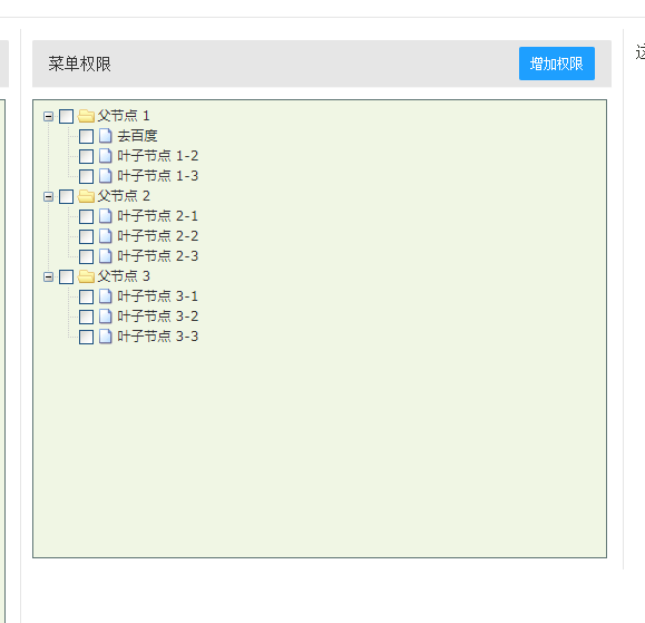 下面就是新增的,新增我没有按照ztree中的方法写,我是在顶部加了一个新增按钮然后调用addNodes方法来实现新增代码如下