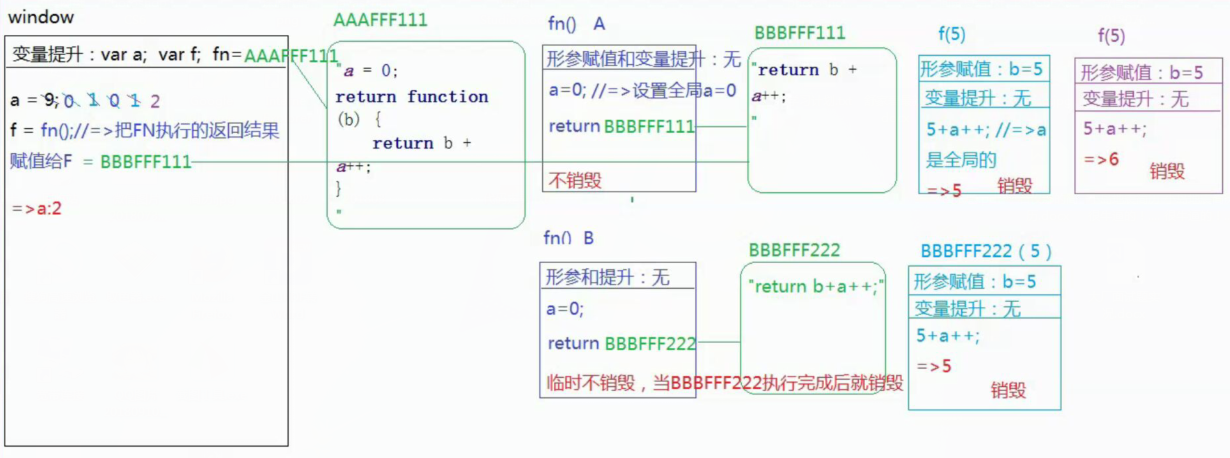 => 在当前作用域当中,js代码自上而下执行之前,首先变量提升=>声明一个变量:var a;声明加定义一个函数fn