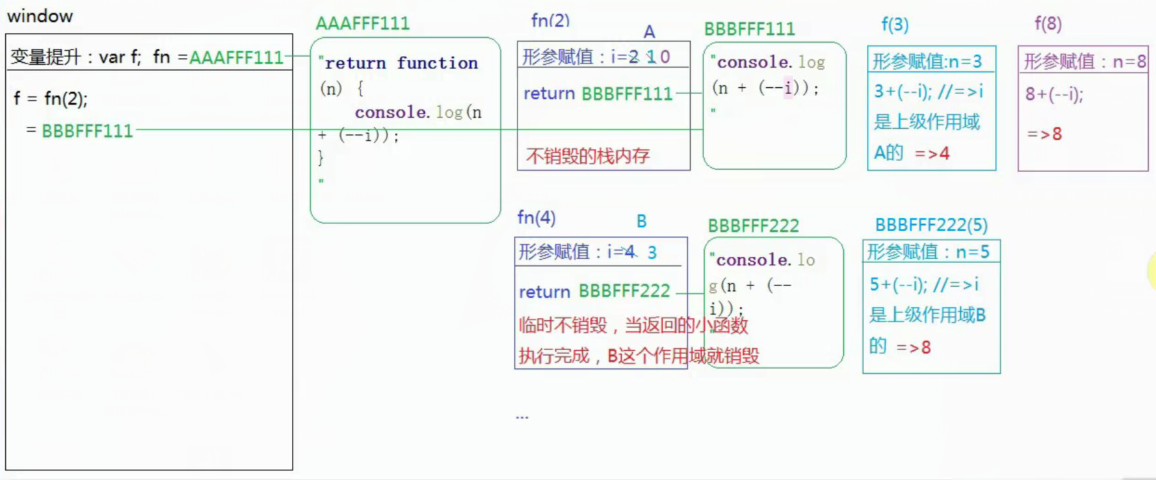 // => foo()执行完后,当前作用域将销毁(没有被外界占用)