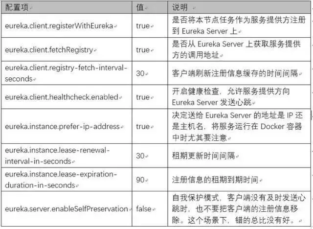 下面是 Eureka 最重要的几个参数配置,从这些参数也可以大概看看 Eureka 是如何工作的。