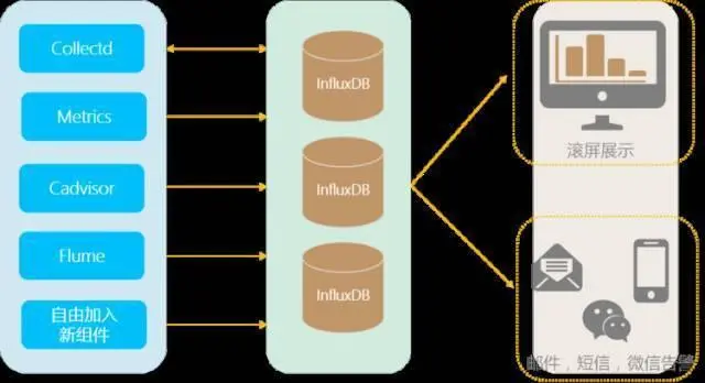 所以,为了让运维的同学能生活得踏实点,最好也能把监控平台给建了。如果希望快速搭建监控平台,可以考虑 Nagios,Zabbix。如果希望扩展性、可定制性更好,可以考虑使用以下组件搭建: