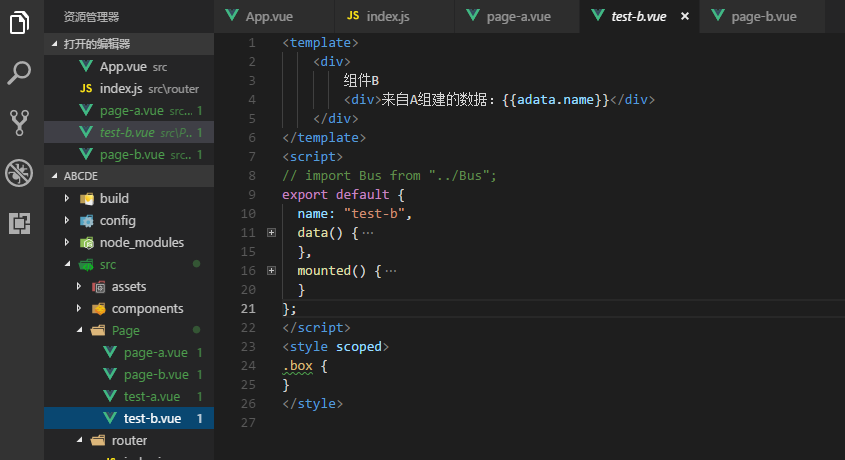 不用 vuex 同页面不同组件数据传递,用vuex的这篇文章可以忽略! 直接举例: 一个页面有两个组件,其中组件A的数据可以传递到组件B,同理组件B的数据可以传递到组件A, 即AB两个组件可以互相传递数据。 有图有真相: 第一步:创建一个组件A
