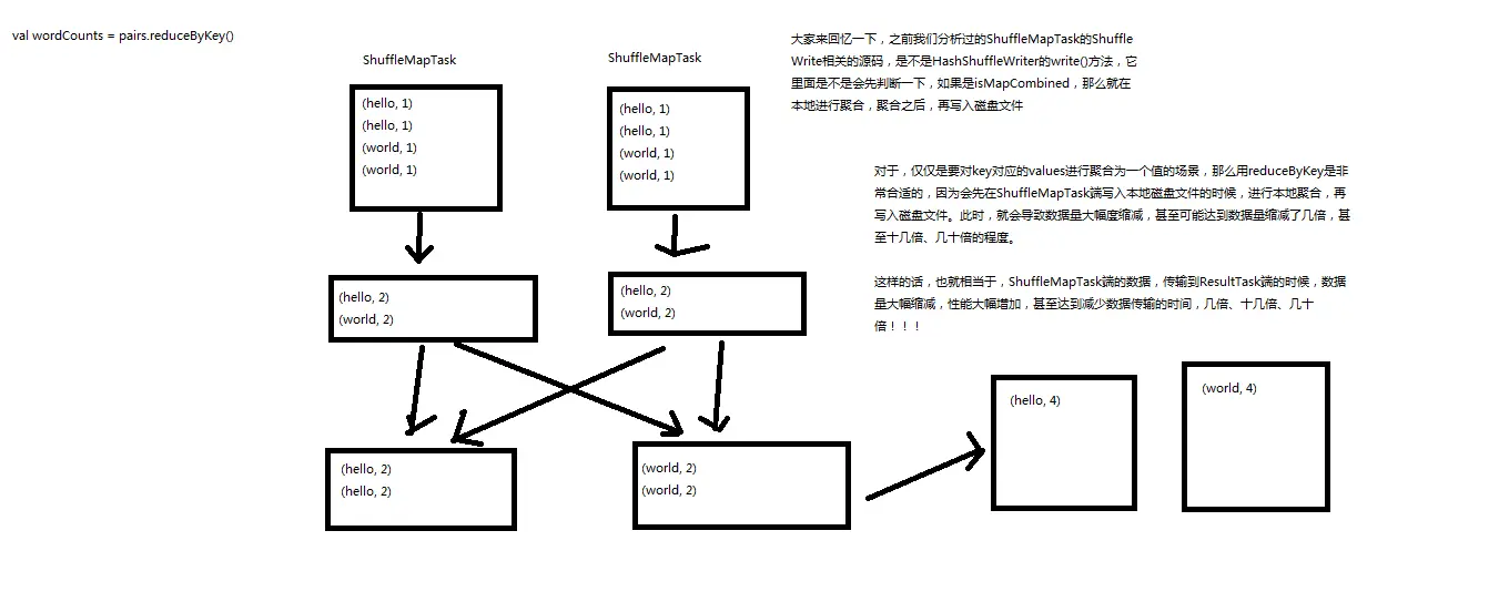 val counts = pairs.reduceByKey(_ + _)