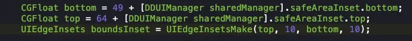 这样写除了使用方便以外,还避免了一部分关于系统的条件编译等,因为safeAreaInset是iOS11才出的.而且在e lse中会返回UIEdgeInsetsZero,使得使用时可以省去一些if-else语句,例如: