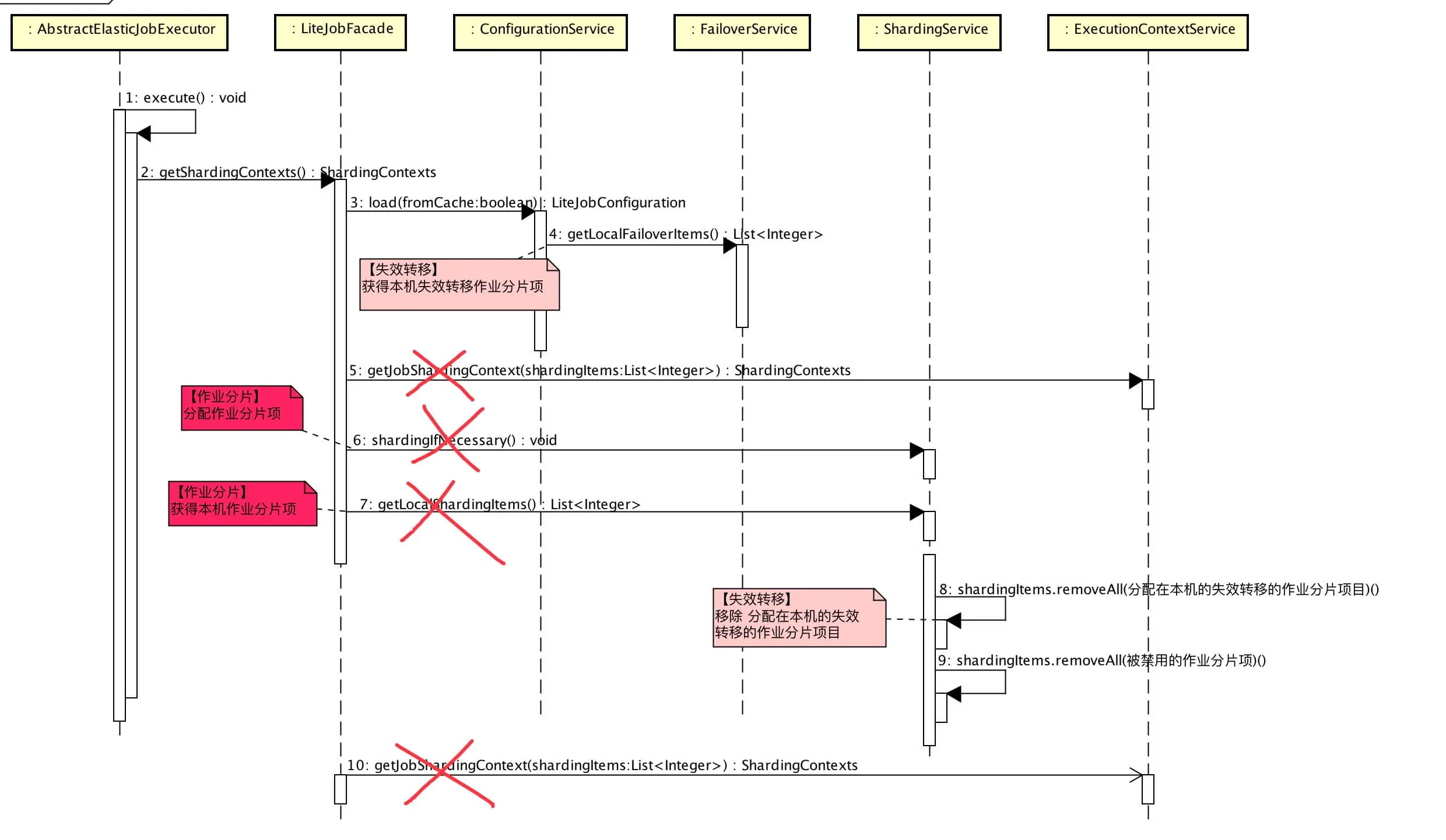 在《Elastic-Job-Lite 源码分析 —— 作业执行》「4.2 获取当前作业服务器的分片上下文」中,我们可以看到作业执行器( AbstractElasticJobExecutor ) 执行作业时,会获取当前作业服务器的分片上下文进行执行。获取过程总体如下顺序图( 打开大图 ):