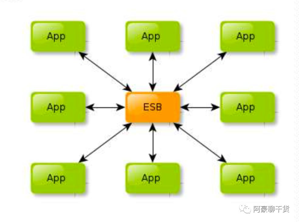 跟 SOA 相提并论的还有一个 ESB(企业服务总线),简单来说 ESB 就是一根管道,用来连接各个服务节点。