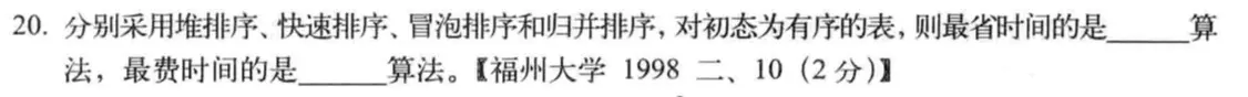 快排在有序的时候,是最慢的, 在有序的情况下,冒泡排序时间复杂性优于堆排序
