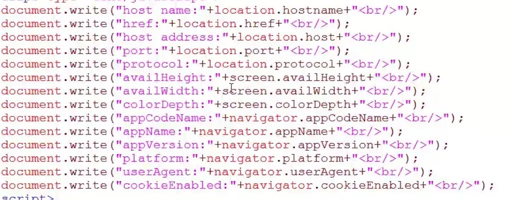 navigator:返回浏览器当前页面的浏览器,包含了一系列的浏览器属性,包括名称、版本号和平台等