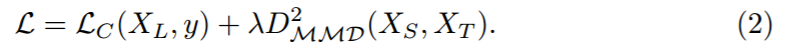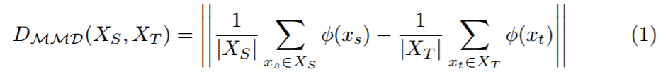 [23] 通过引入适应层和额外的域混淆损失来扩展 MMD 用以比较深度神经网络中的分布,以学习具有语义意义和域不变性的表示。该工作中使用的 MMD 距离定义为: