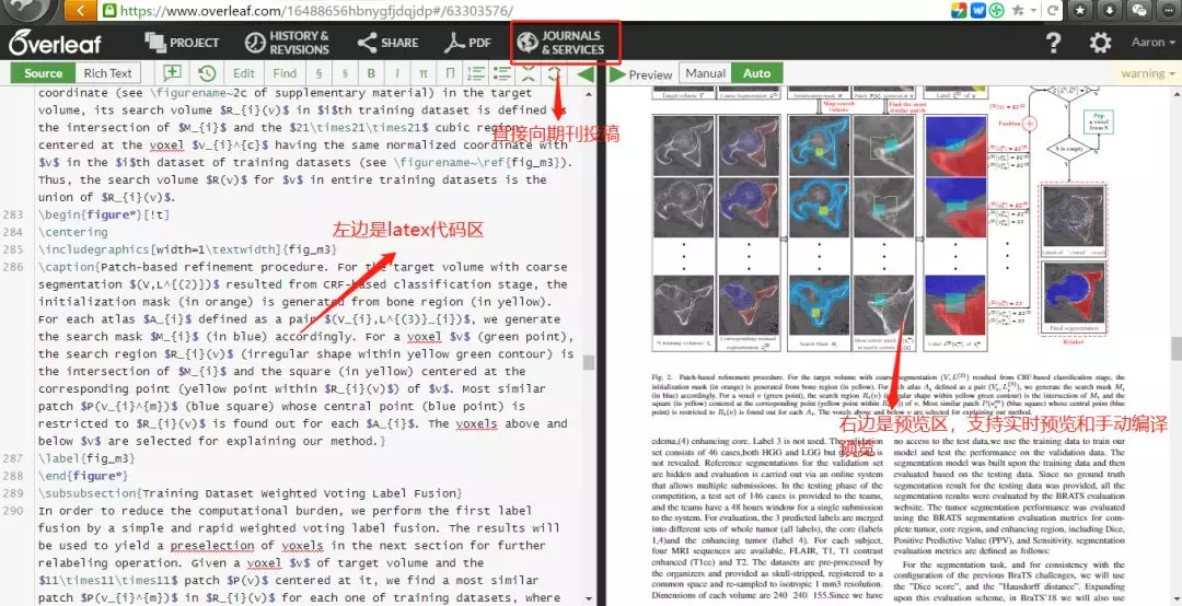 最后介绍一款云端的latex编辑工具。overleaf能够帮助你省去很多的latex配置时间,而且它还支持实时的编译和预览以及期刊投稿。