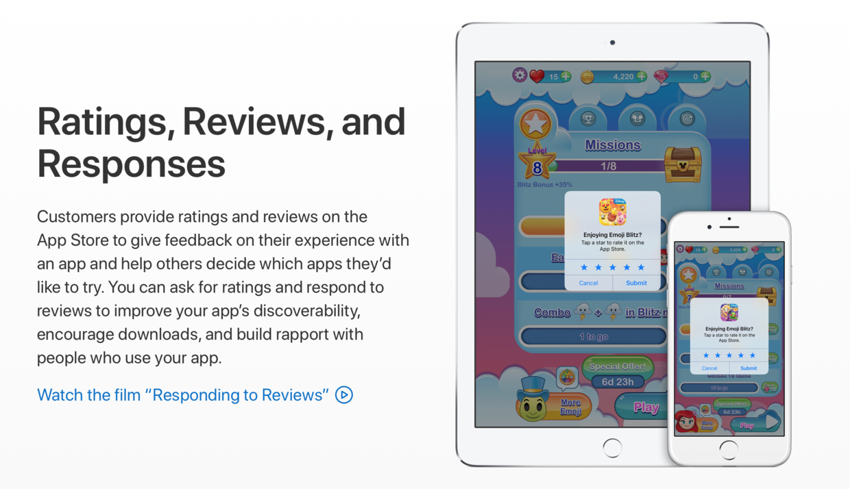 无论是苹果的 App Store 还是各类安卓应用商店, 应用都有办法跳转到商店来让用户给应用评分。iOS 10.3 之后还有这样一个方法,来让用户留在 App 内就可以方便地给 App 进行评分。