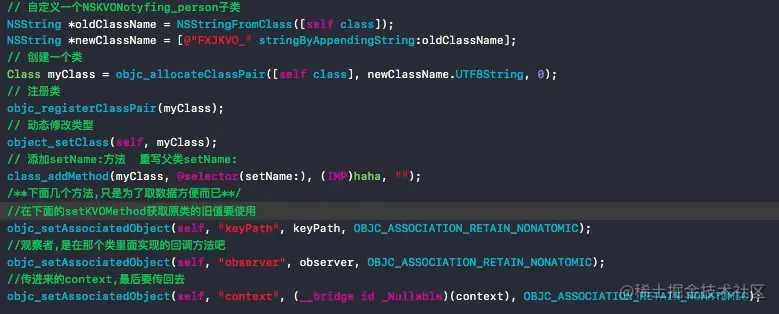 (类名就是在该类的前面加上NSKVONotifying_ 前缀)可以打印原生类的子类列表来验证生成子类,在这个派生类中重写基类中任何被观察属性的 setter 方法。