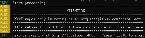 INFO Hexo is running at http://localhost:4000/. Press Ctrl+C to stop.