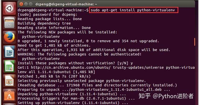 如果上述方法安装不成功的话,可以尝试输入命令“sudo apt-get install python-virtualenv”进行安装,如下图所示。