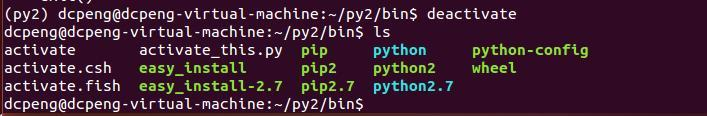 需要注意的是在切换到py2虚拟环境之前,需要输入命令“deactivate”,以退出之前的demo虚拟环境,如上图所示。