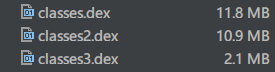 dex文件是java代码打包后的字节码,一个dex文件最多只支持65536个方法,这也是为什么微信有了三个dex文件的原因。