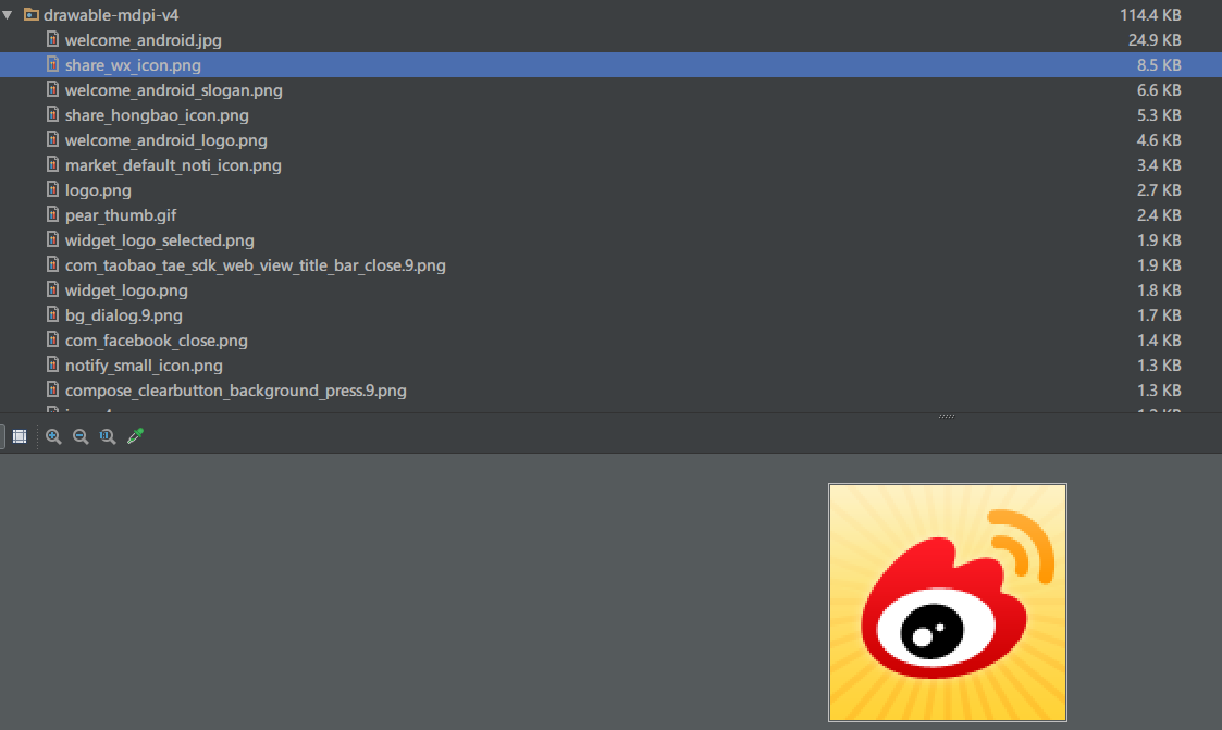 res目录存放的是资源文件。包括图片、字符串。raw文件夹下面是音频文件,各种xml文件等等。因为微信做了资源混淆,图片名字都不可读了。