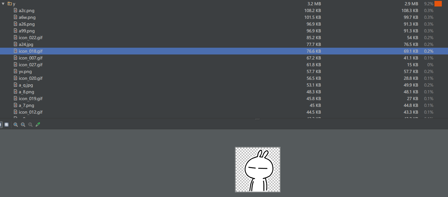 pngquant也是一款著名的压缩工具,对于png的疗效还不错,但它不一定就适合app中那种背景透明的小icon,所以对比起tinypng来说,优势不明显。