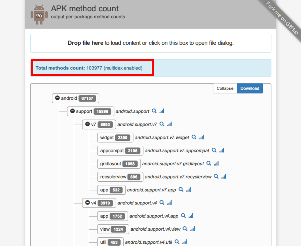 你还可以用apk-method-count这个工具来查看项目中各个包中的方法数,它会生成树形结构的文档,十分直观。