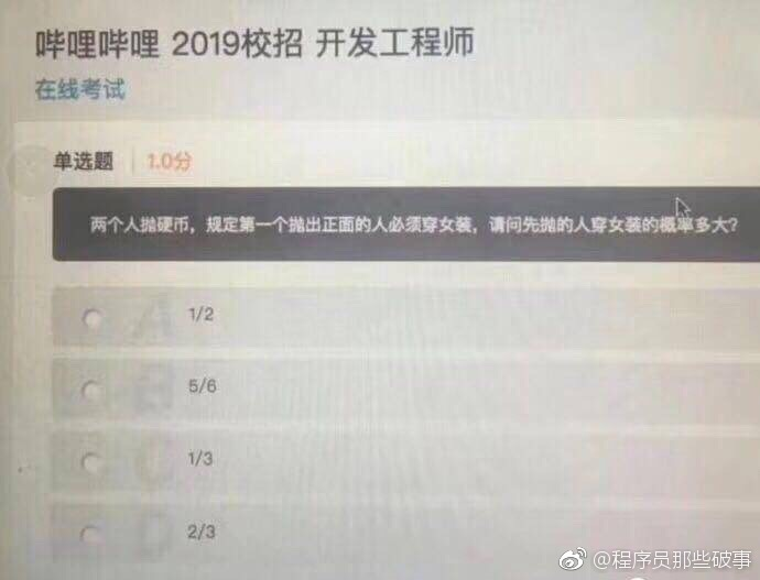 - @yangyp:第一个人先抛,1/2的概率正面,1/2反面的话,后面因为还有概率继续抛,所以总体概率大于 1/2,排除 AC,第二个人接着抛,1/4的概率正面,后面还有有机会,所以大于 1/4 排除 B, 这样对不对,数学渣路过