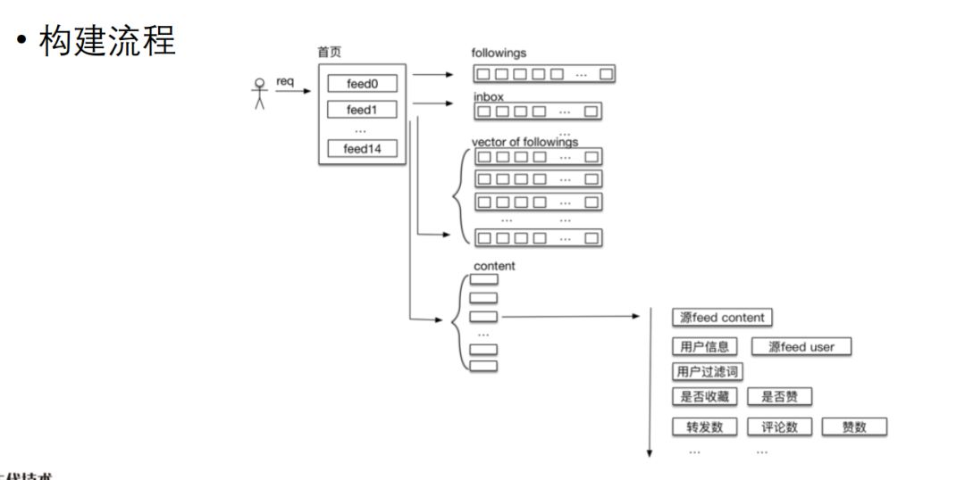 根据以上步骤留下的微博,会再进一步来看,用户对这些微博有没有收藏、点赞,做一些 Flag 设置,还会对这些微博各种计数,转发、评论、赞数进行组装,最后才把这十几条微博返回给用户的各种端。