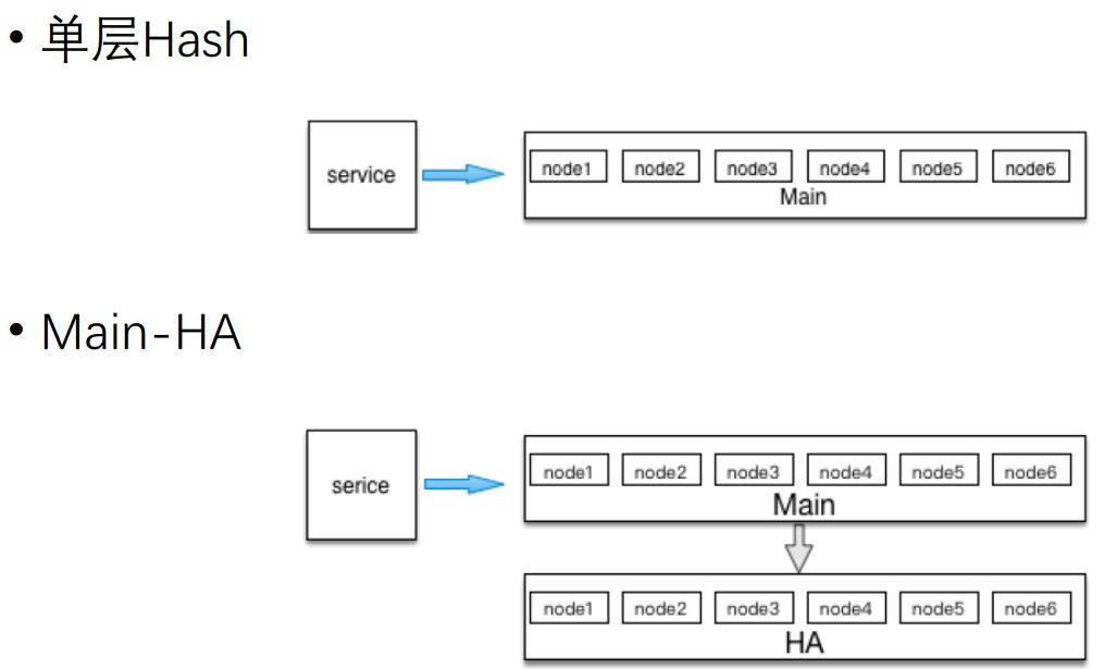 于是我们很快进行了改造,增加了一个 HA 层,这样即便 Main 层出现某些节点宕机情况或者挂掉之后,这些请求会进一步穿透到 HA 层,不会穿透到 DB 层。