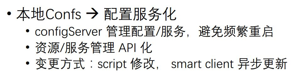 采取的方案首先就是对整个 Cache 进行服务化管理,对配置进行服务化管理,避免频繁重启,另外如果配置发生变更,直接用一个脚本修改一下。