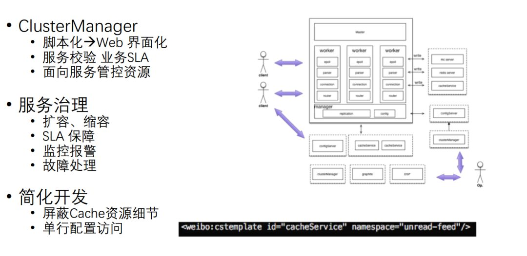 服务化还引入 Cluster Manager,实现对外部的管理,通过一个界面来进行管理,可以进行服务校验。