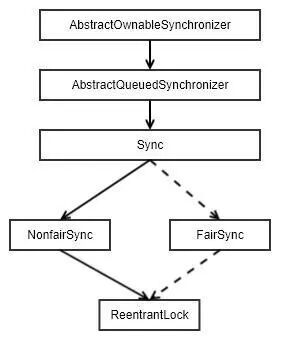 一步一步往上找,找到了这个鬼AbstractQueuedSynchronizer(简称AQS),最后这个鬼,又是继承于AbstractOwnableSynchronizer(AOS),AOS主要是保存获取当前锁的线程对象,代码不多不再展开。最后我们可以看到几个主要类的继承关系。