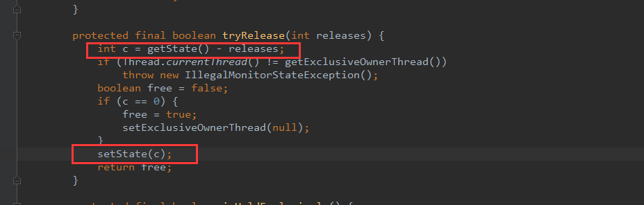 基本可以确认,释放锁就是对AQS中的状态值State进行修改。同时更新下一个链表中的线程等待节点。