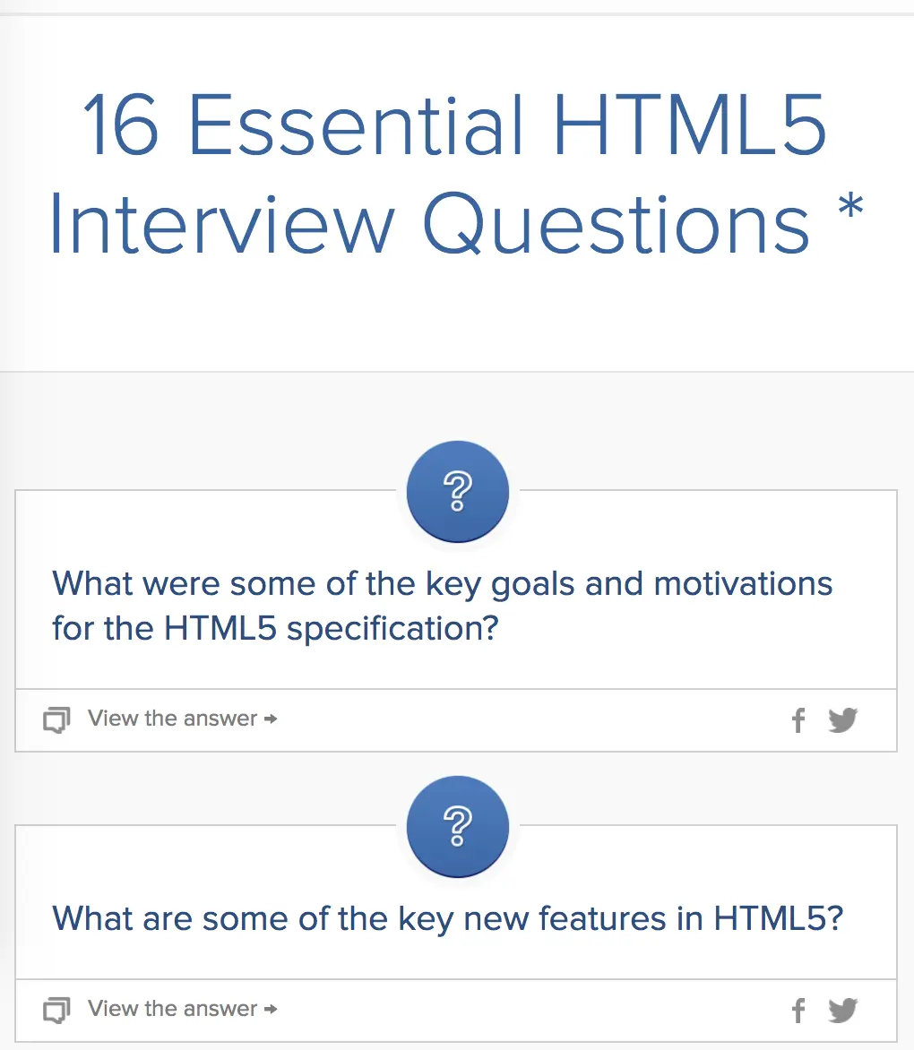 前端面试必然离不开各种笔试题目,因此前期的准备工作就是搜集市面上已知的前端题目。通过笔试网站、个人博客、Github等各种途径,搜集到了国内和国外的各类习题,总计大概有3、4千道,每道题目会涉及一个或多个前端知识点。这些知识点并没有覆盖前端的所有方面,我只挑选了书中将会用到的部分。下图是国外某个网站的题目列表。