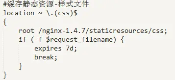 expires 7d:过期时效为7天,静态文件不怎么更新,过期时效可以设大一点,如果频繁更新,则可以设置得小一点;