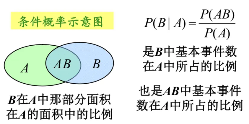 P(B|A)=P(AB)/P(A) B中样本点在A中所占比例