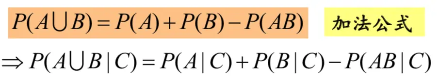 由于条件概率满足概率的三个条件, 因此有关概率的一些重要的结果和运算律 对条件概率也成立。例如,
