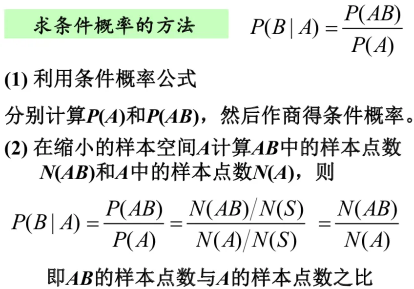 注意: 无条件概率P(A)就是条件概率P(A|S),