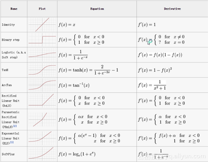 激活函数的速查表如下: