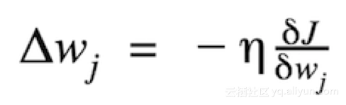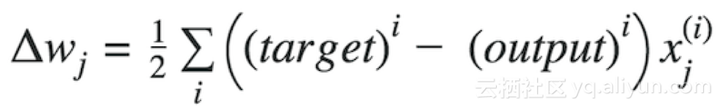 其中Δw是包含每个权重系数w的权重更新的向量,其计算方式如下: