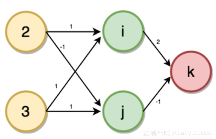 将图中输入层到输出层的给定权重作为输入:家庭成员数为2、账户数为3。