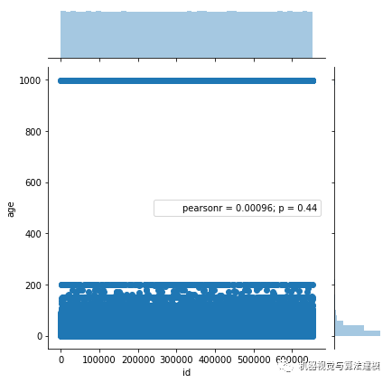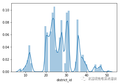 数据离散化是有风险的,因为离散化后的数据效能未必会比离散化之前好,一般是根据专家的建议设置区间,而不是随意猜测一个区间。这里是利用无监督模型(K-means 算法)聚类,将id类的数据分段。首先看下数据的分布,猜测一下应该聚成几类,因为k-means算法要求提供聚类的簇数。利用seaborn可视化数据: