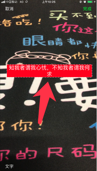 }其次有个可以拖动、缩放、旋转的文本框,点击可以重新编辑,我是封装了一个类FWTextView,具体代码可以从下面的demo里找到,如图