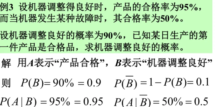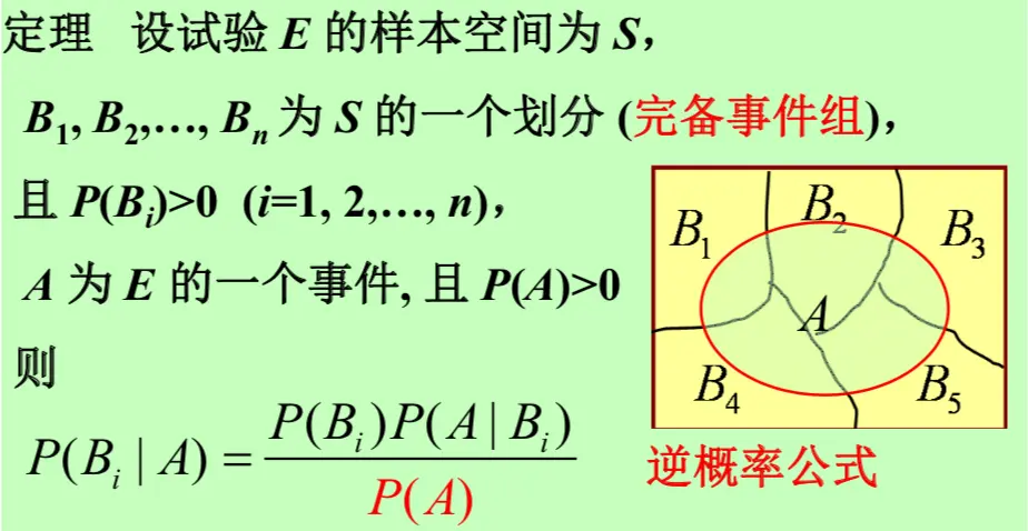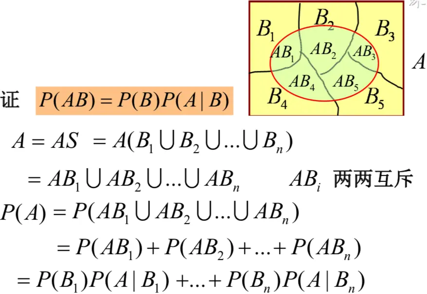 事件A的发生有各种可能的原因Bi (i=1,...,n)。 如果A是由原因Bi引起,则A发生的概率为