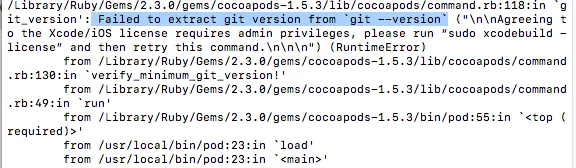 若在pod setup 后出现Failed to extract git version from `git --version`。。。。。。