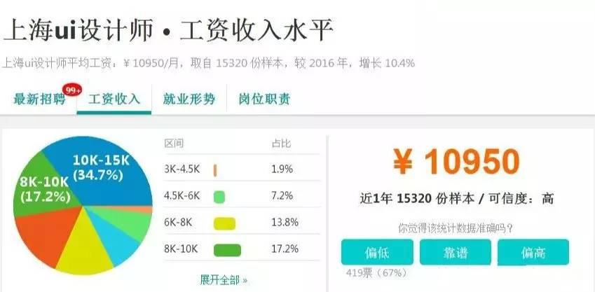 有人不服UI设计待遇薪资高,那么下面就来看下一线城市的最新UI设计平均薪资待遇,大家也可以打开各招聘网站查询各行业平均薪资情况,一个行业的薪资高不高行业市场决定。