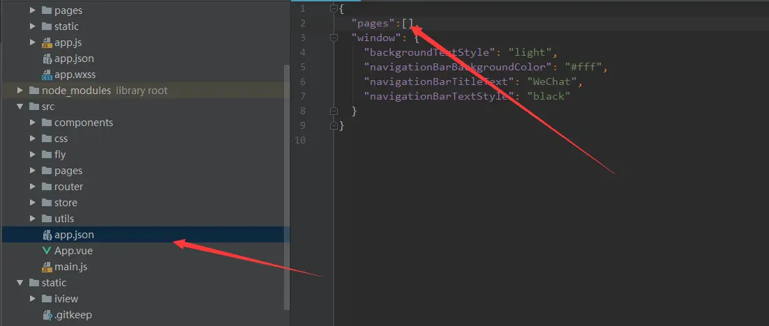 重启项目,都要编译router/index.js 文件,不然app.json不会有pages属性