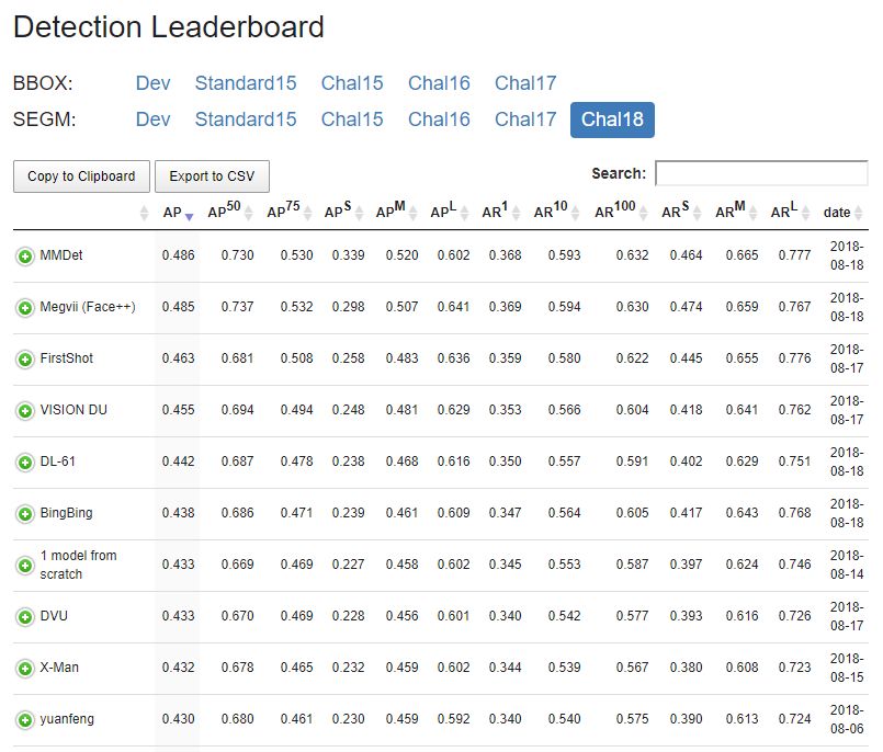 ECCV2018MS COCO检测比赛结果: