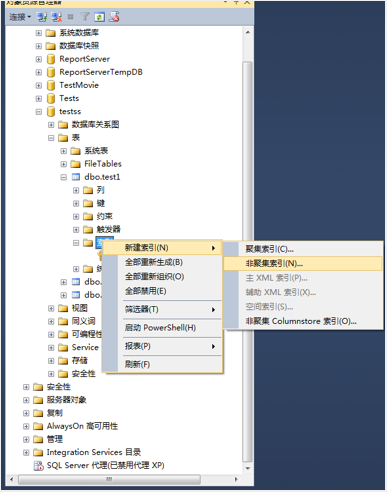 1、连接数据库,选择数据库,选择数据表-》展开数据表-》右键点击索引-》选择新建索引-》选择非聚集索引。