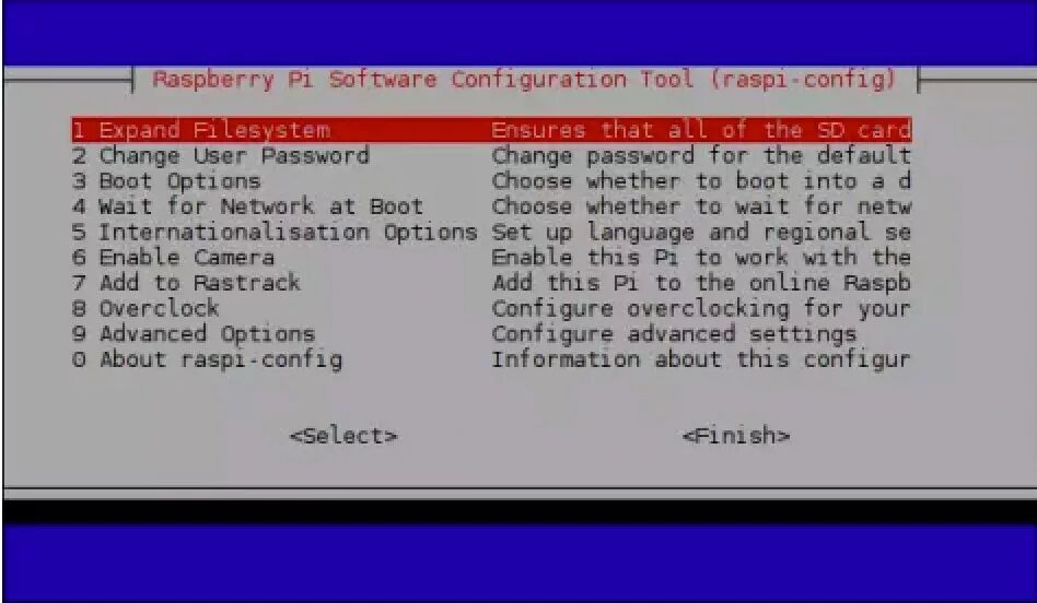 树莓派本身也提供一个配置工具界面。在命令行下键入命令sudo raspi-config。显示如下图。