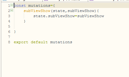 mutations.js文件,主要是放置你修改state里面数据的方法,前面是方法名,第一个参数是state不需要修改,第二次参数是后面你需要传入修改的值,下面是赋值的写法。